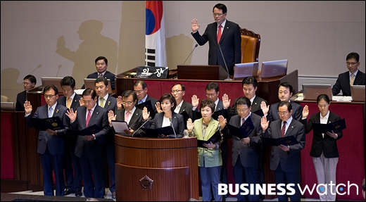 19대 국회 후반기 첫 정기국회가 1일 개회했다. 국회는 이날 오후 2시 국회 본청에서 여야 의원들이 참석한 가운데 제329회 국회 정기회 개회식을 열고 100일 간의 정기국회 일정에 돌입했다.