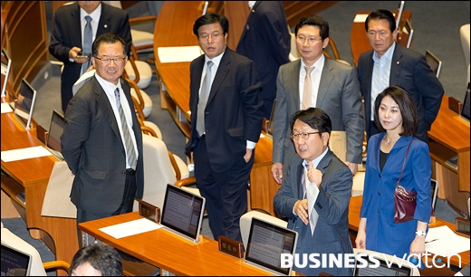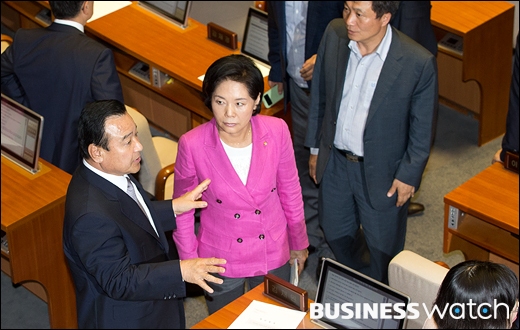 이에 김무성 대표를 비롯한 새누리당 의원들은 만장일치로 이 원내대표의 사의 표명을 반려했다.