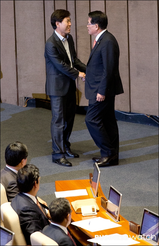 이 원내대표는 이날 본회의 산회 직후 열린 의원총회에서 "(정 의장과) 오전 마지막 통화에서 법안을 통과시킬 것으로 얘기됐는데 예상치 못한 상황이 벌어져 원내대표로서 막중한 책임감을 느낀다"며 "이런 사태가 벌어진 것에 대한 정치적 책임을 지고 물러나겠다"고 밝혔다.