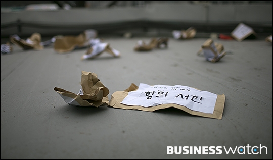 | ▲ 항의서한 던지는 민주노총 |