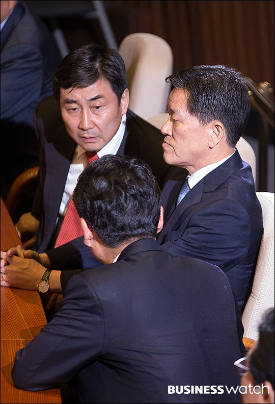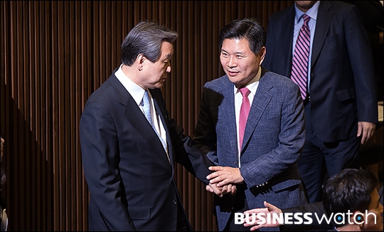 | ▲ 대화 나누는 김무성 대표와 정종섭 행안부 장관 |