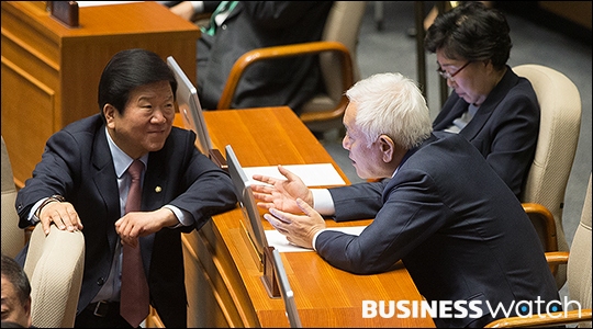 | ▲ 대화나누는 유승민 새누리 원내대표와 이석현 국회부의장 |