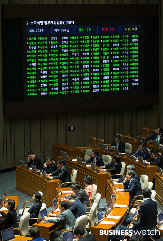 | ▲ 국회는 12일 본회의를 열어 연말정산 환급을 골자로 한 '소득세법' 개정안을 심의·의결했다. 개정안은 이달 급여일에 연말정산 추가환급분 4천560억 원을 638만 명에 환급하도록 했다. 1인당 환급받는 금액은 평균 7만1천원 가량이다. /이명근 기자 qwe123@ |