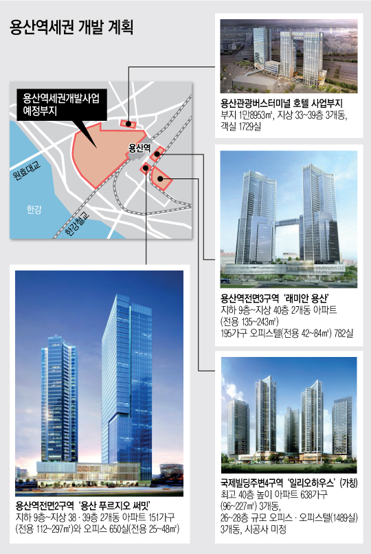 하지만 최근들어 반전의 조짐이 여기저기서 보인다. 용산역 뒷편 버스터미널 부지에 초대형 호텔 사업이 가시화됐고, 오랜 기간 사업이 지체됐던 역 앞 복합개발 정비사업도 속속 분양에 착수하고 있다.