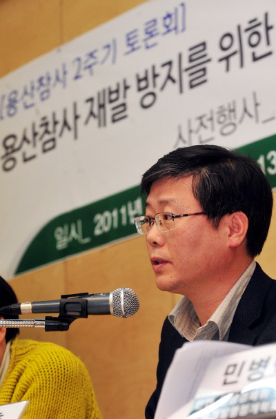 | ▲ 2011년1월18일 오후 서울 중구 정동 환경재단 레이첼카슨홀에서 용산참사 2주기범국민추모위원회 주최로 열린 '용산2주기강제퇴거금지법 토론회 및 보고대회'에서 변창흠 세종대 교수가 발언하고 있다. |