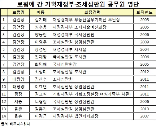 2000년대 중반 재정경제부 세제실 공무원들의 로펌행이 도마에 올랐다. 참여정부의 종합부동산세 도입 실무를 맡았던 김기태 재경부 부동산실무기획단 부단장과 비과세·감면 규정을 담당하던 성수용 조세지출예산과장이 2005년 돌연 사표를 내고 김앤장 법률사무소에 합류한 것이다.