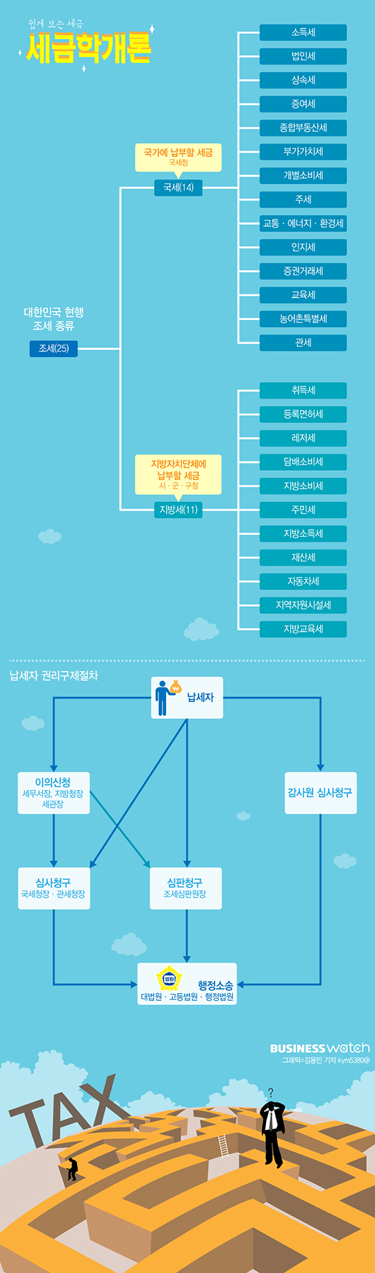 그래도 납세자는 오랜 고민 끝에 큰 마음 먹고 전화했는데, 자꾸 다른 곳에 전화하라니 답답하다. 애초부터 번지수라도 제대로 찾으면 괜한 수고를 덜 수 있다. 세금의 기초 중의 기초, 기본 골격만 제대로 이해하면 한결 쉽게 다가설 수 있다.