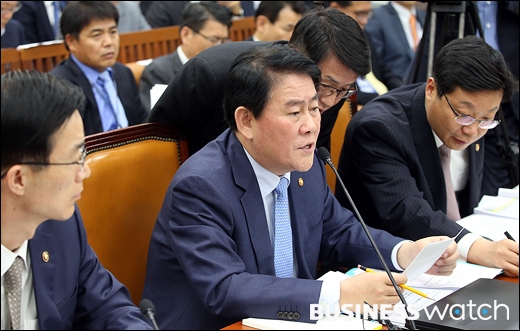 | ▲ 지난 17일 국회에서 열린 기획재정부 국정감사에서 최경환 경제부총리가 문창용 세제실장의 설명을 듣고 있다. /이명근 기자 qwe123@ |